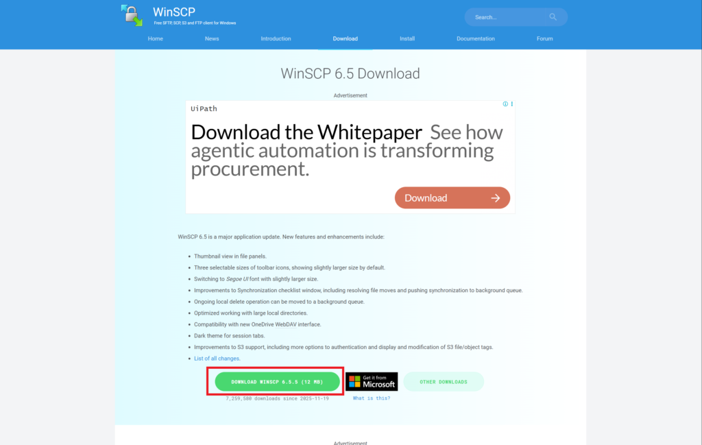 WinSCPは接続したサーバーをコマンドで操作できるツールです。